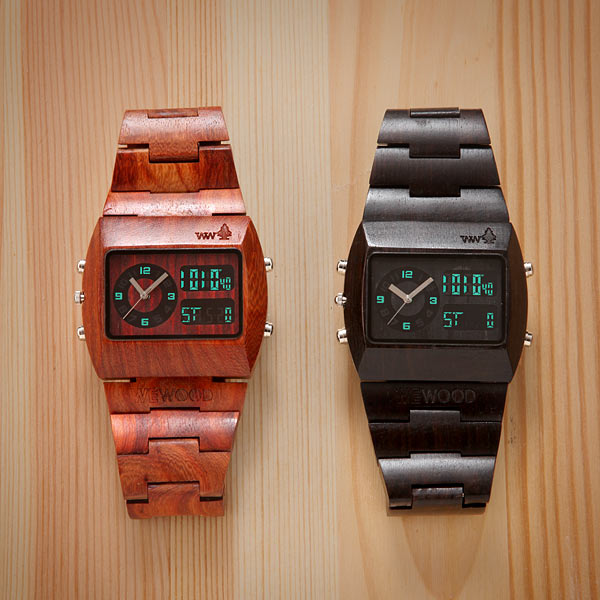 La marque WeWood vient de sortir deux montres assez jolies dont la particularité réside dans le fait qu’elles sont… en bois ! Les gadgets WeWood proviennent de résidus de bois de l’industrie, et la marque promet de planter un arbre pour chaque montre vendue. Je ne mesure pas l’ampleur du geste écologique, mais le concept est très sympa ! Disponible chez ThinkGeek.com
